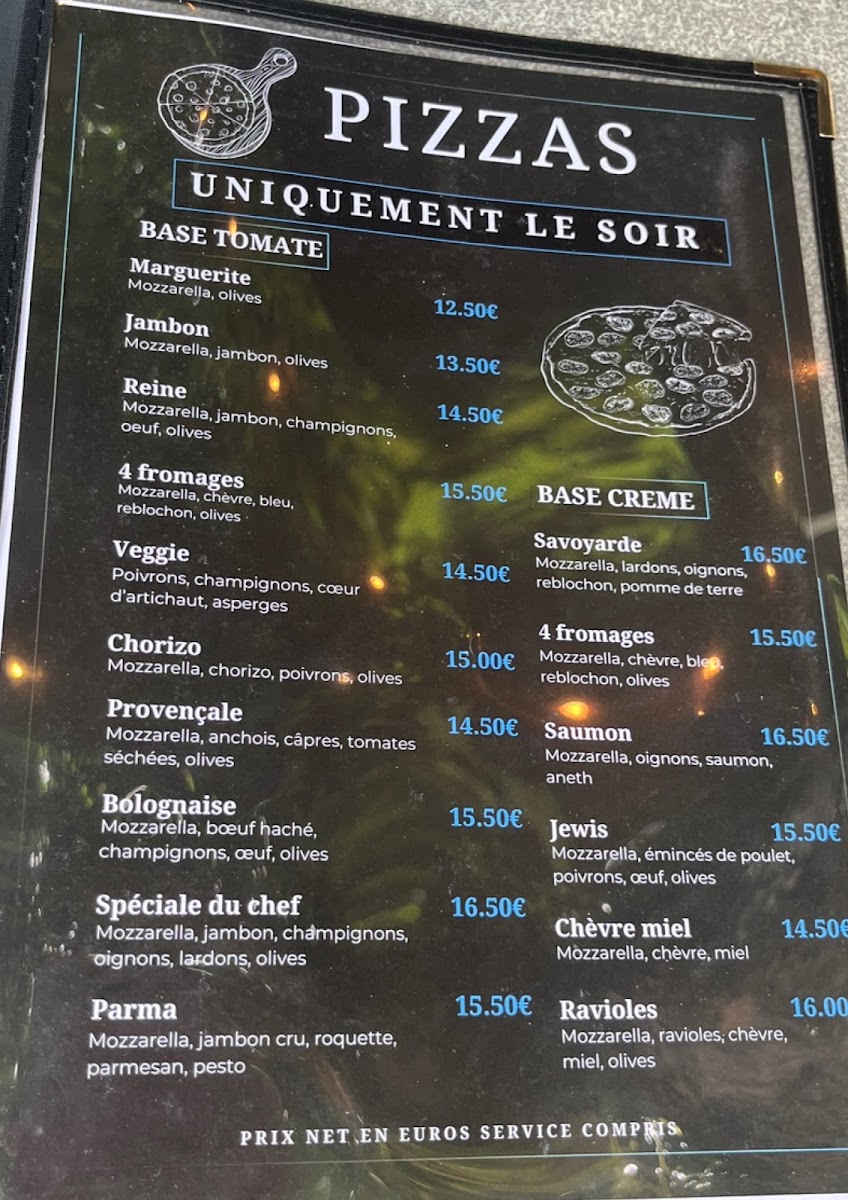 The highlights of the menu feature exquisite dishes such as frog legs, perfectly sautéed to a golden crisp, and succulent duck breast that melts in your mouth. For those seeking comfort, the fondue for two promises warmth and shared moments, while the artisanal pizzas offer a delightful twist to the French fare.